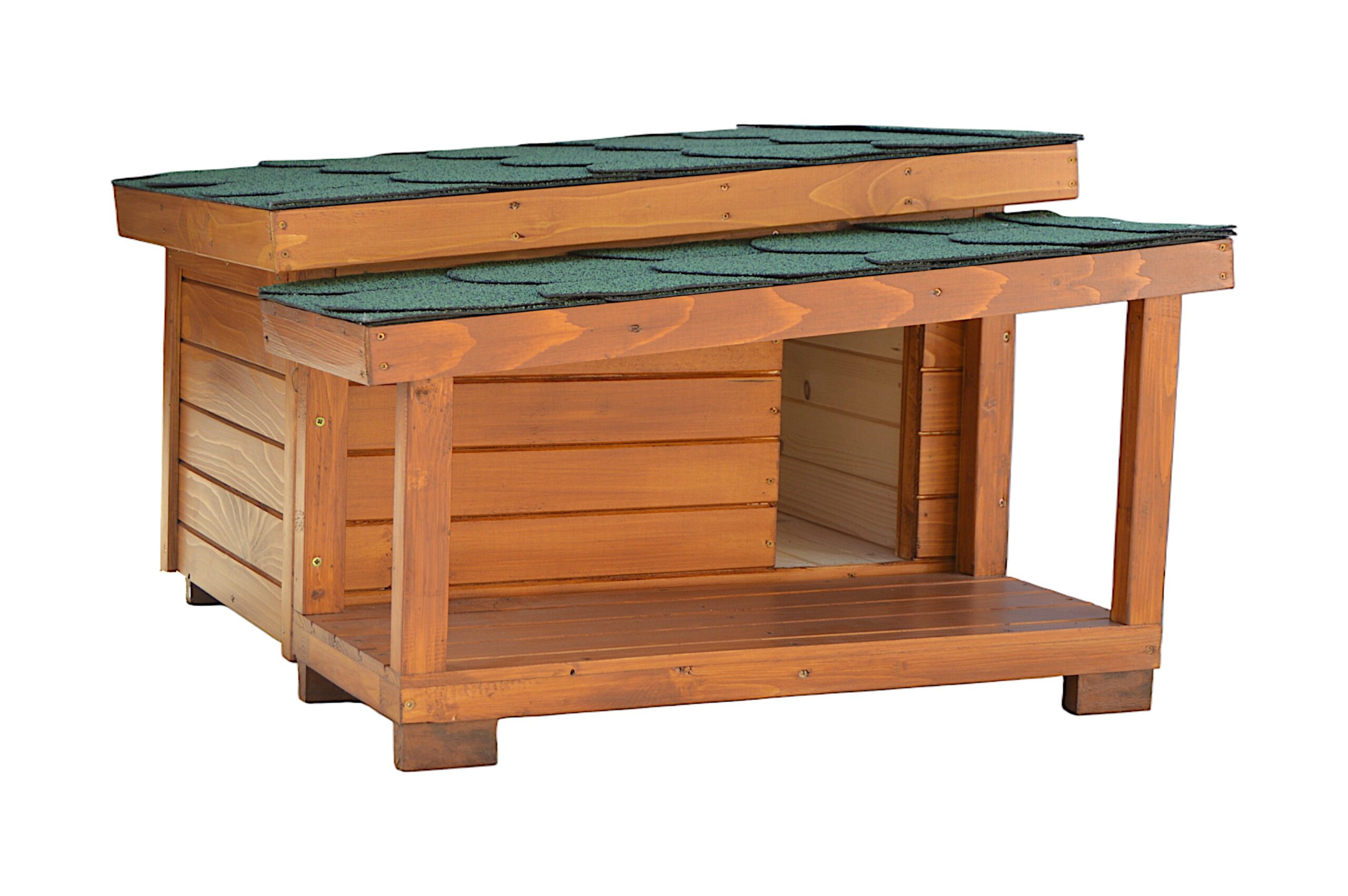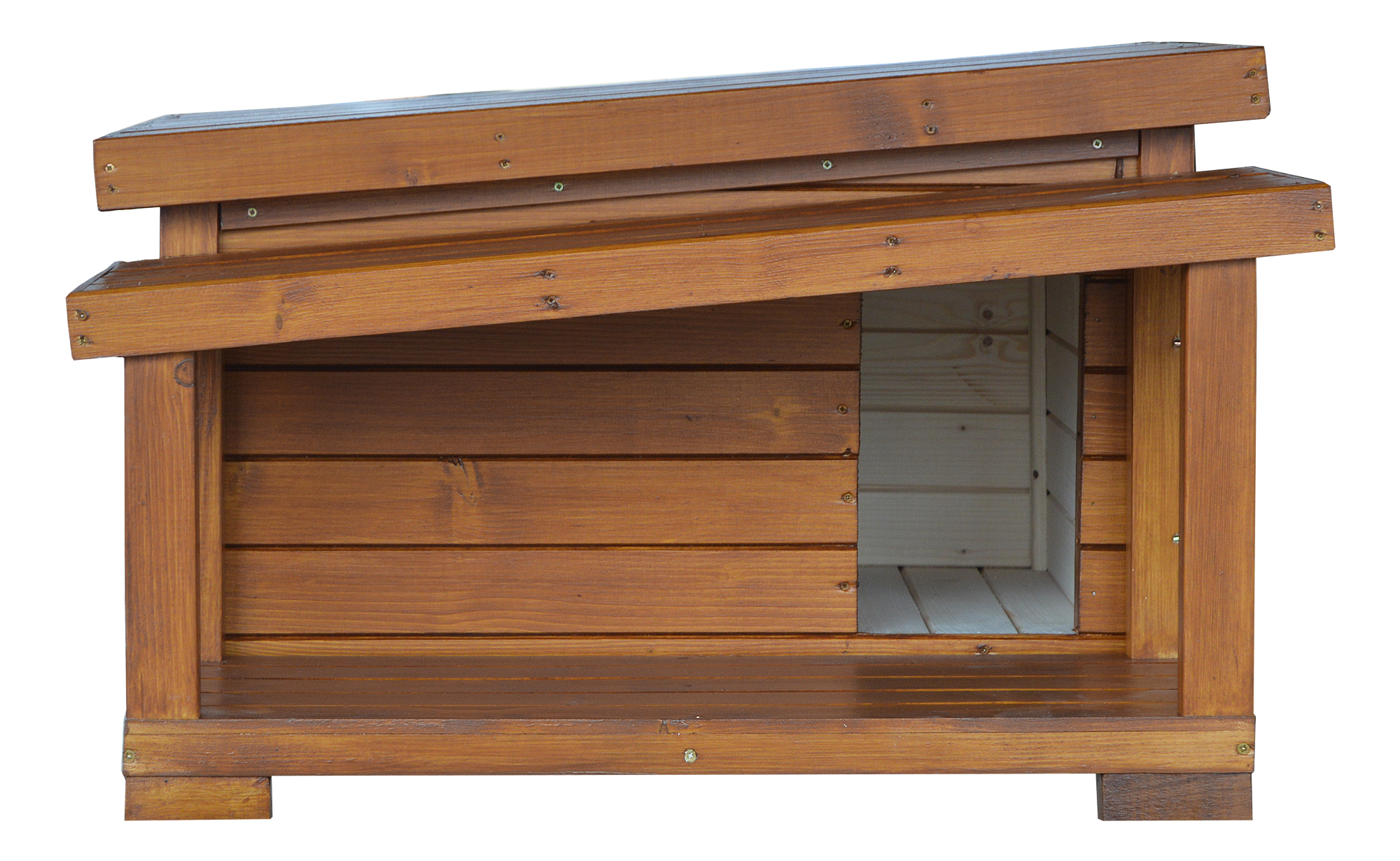 Drevený domček pre mačky DARLING je kompletne zaizolovaný, takže vaša mačička bude počas celého roka chránená pred vonkajšími vplyvmi. Domček má šikmú strechu, ktorá si hravo poradí so snehom či dažďom. Strecha poslúži aj ako vyvýšené ležovisko pre oddych mačičky.