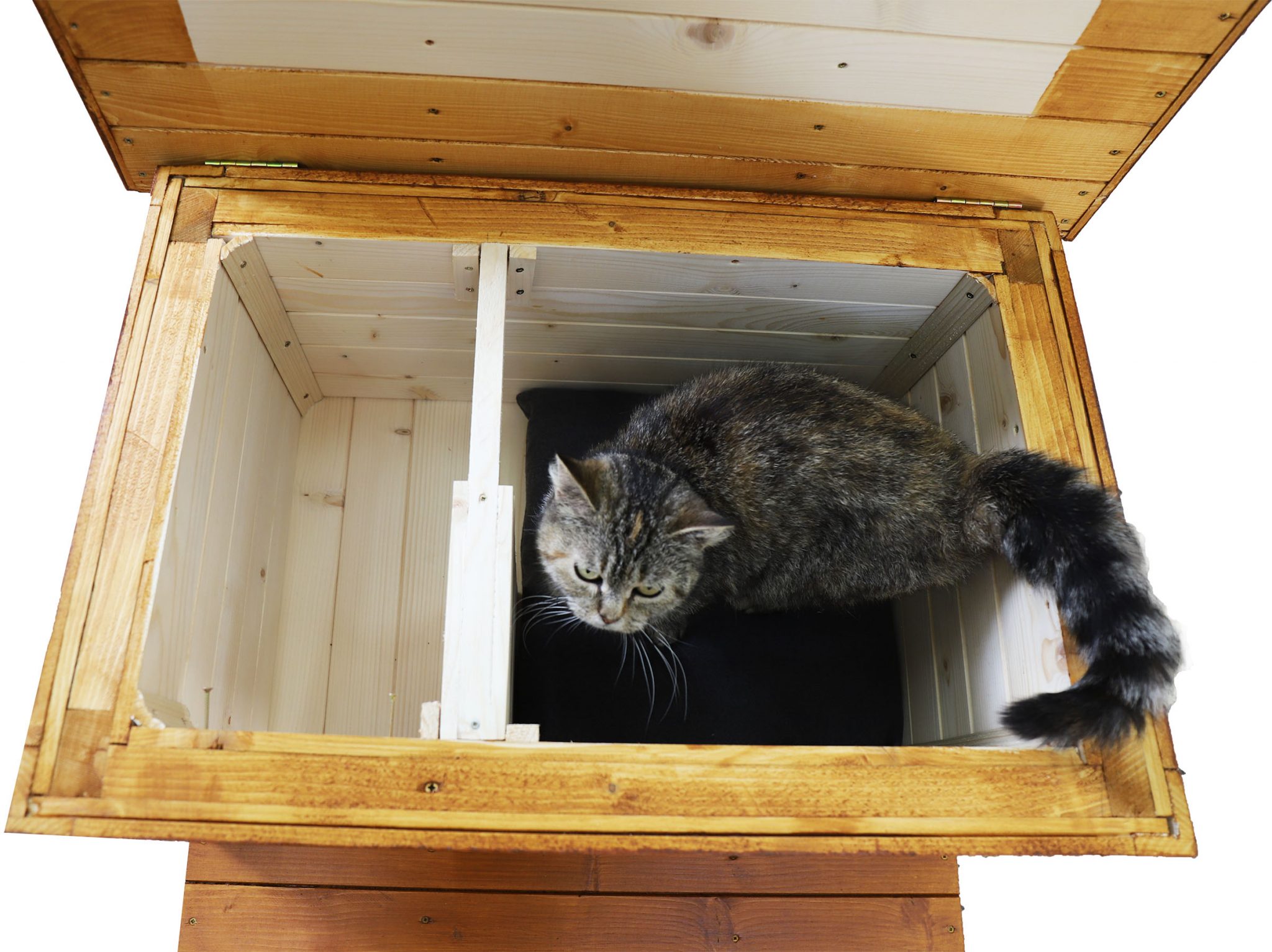 Domček kompletne izolujeme, preto v ňom bude mať vaša mačička cez letné horúčavy príjemný chládok. V zime si ho zas ľahšie vyhreje a keďže je izolácia aj v prepážke, domček udrží pre vášho miláčika viac tepla. Priečku môžete v lete vybrať, čím sa vnútorný priestor zväčší o predsieň a domček sa rýchlejšie vyvetrá.