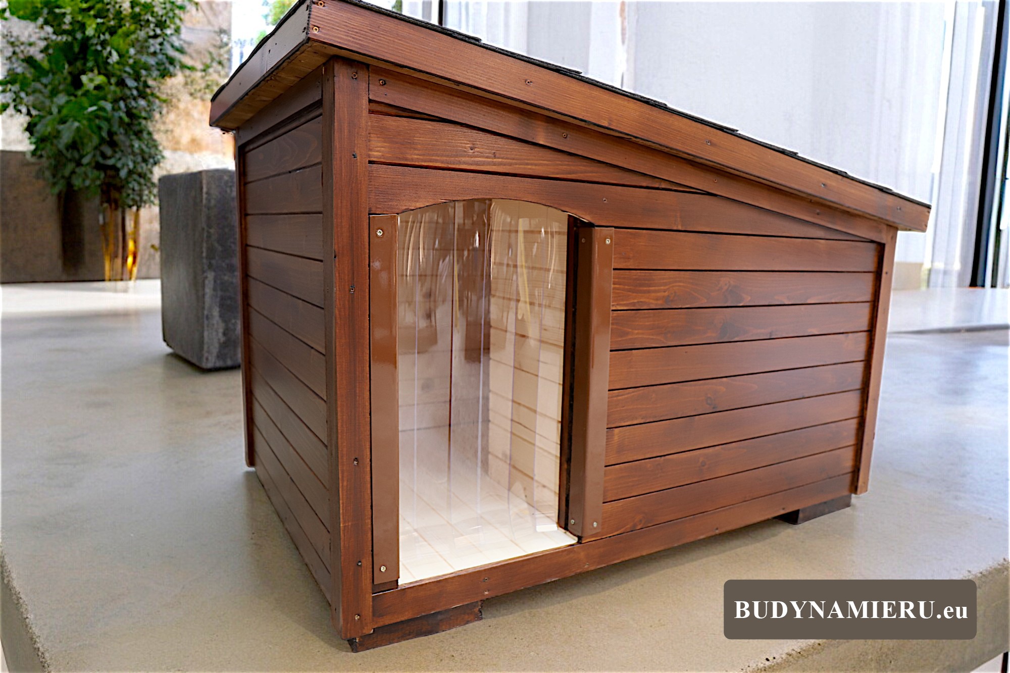 Kvalitná zateplená búda pre psa MAXIM (odtieň náteru orech) so šikmou strechou so sklonom do strany