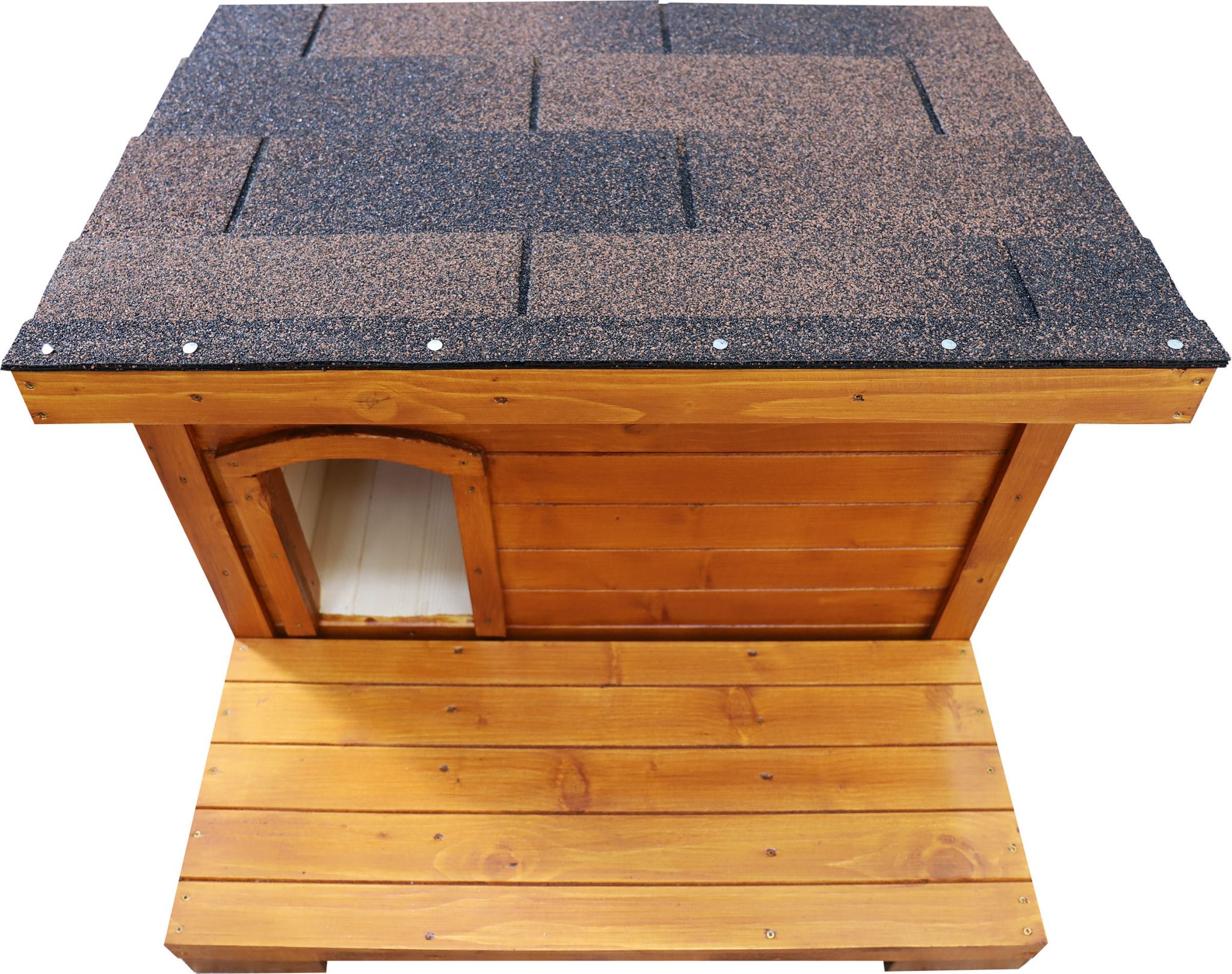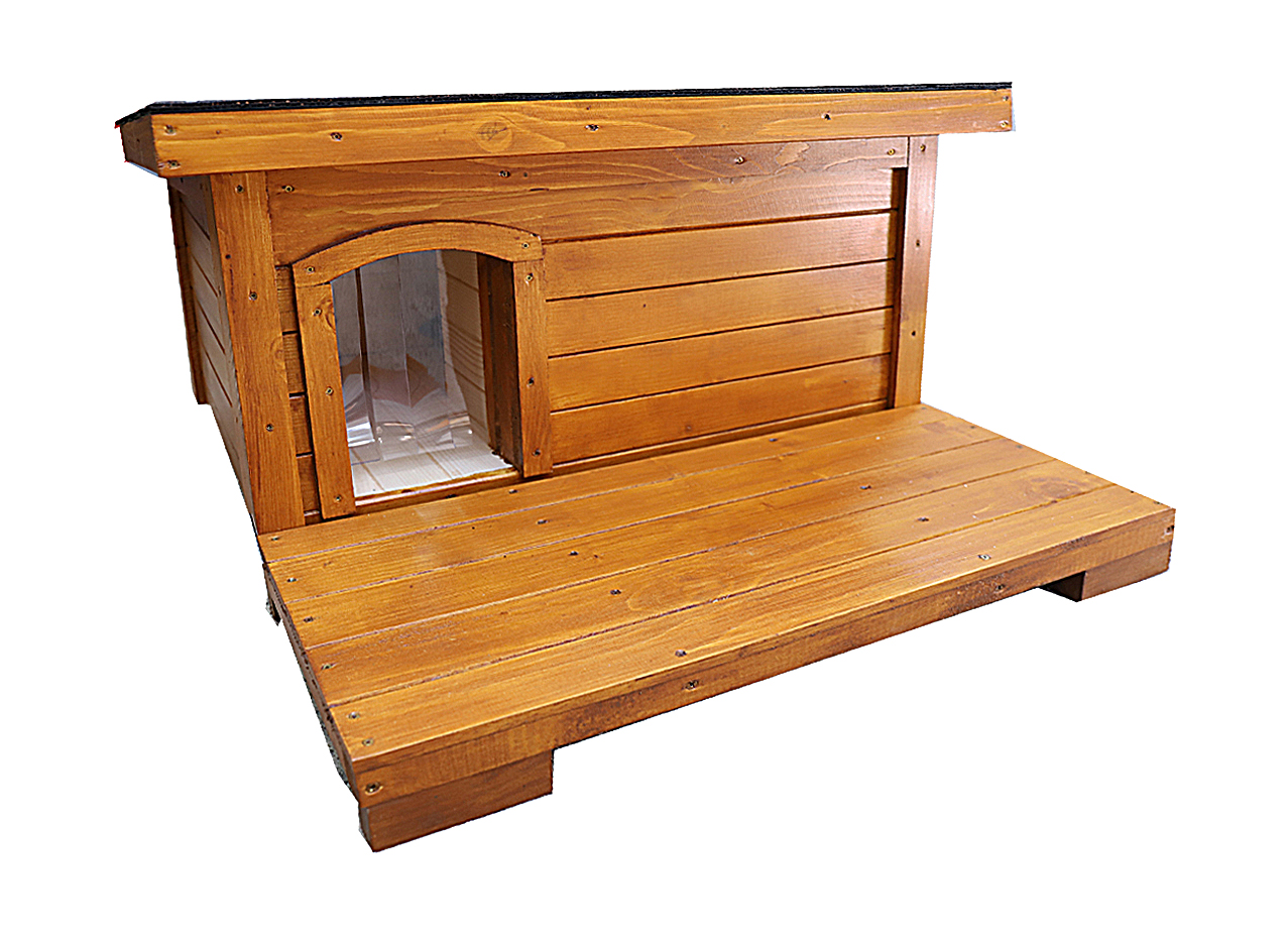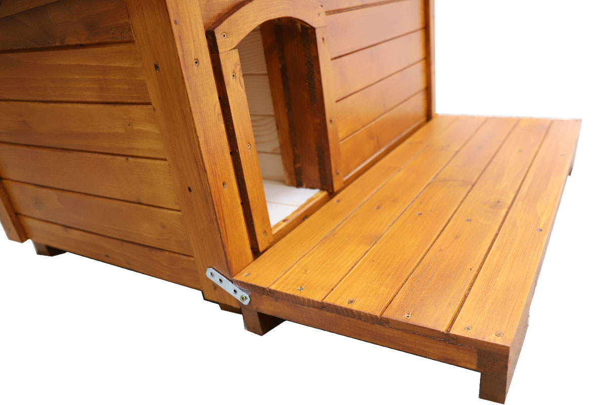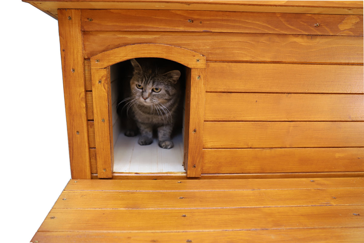 Drevený domček je ošetrený špeciálnym ochranným náterom, ktorý ho chráni pred vonkajšími vplyvmi. Je vhodný na celoročné používanie v interiéri a v exteriéri. Vaša mačička bude vždy v bezpečí pred akýmkoľvek počasím. Z praktickej šikmej strechy stečie sneh aj voda.