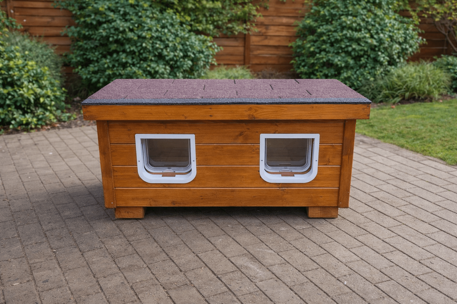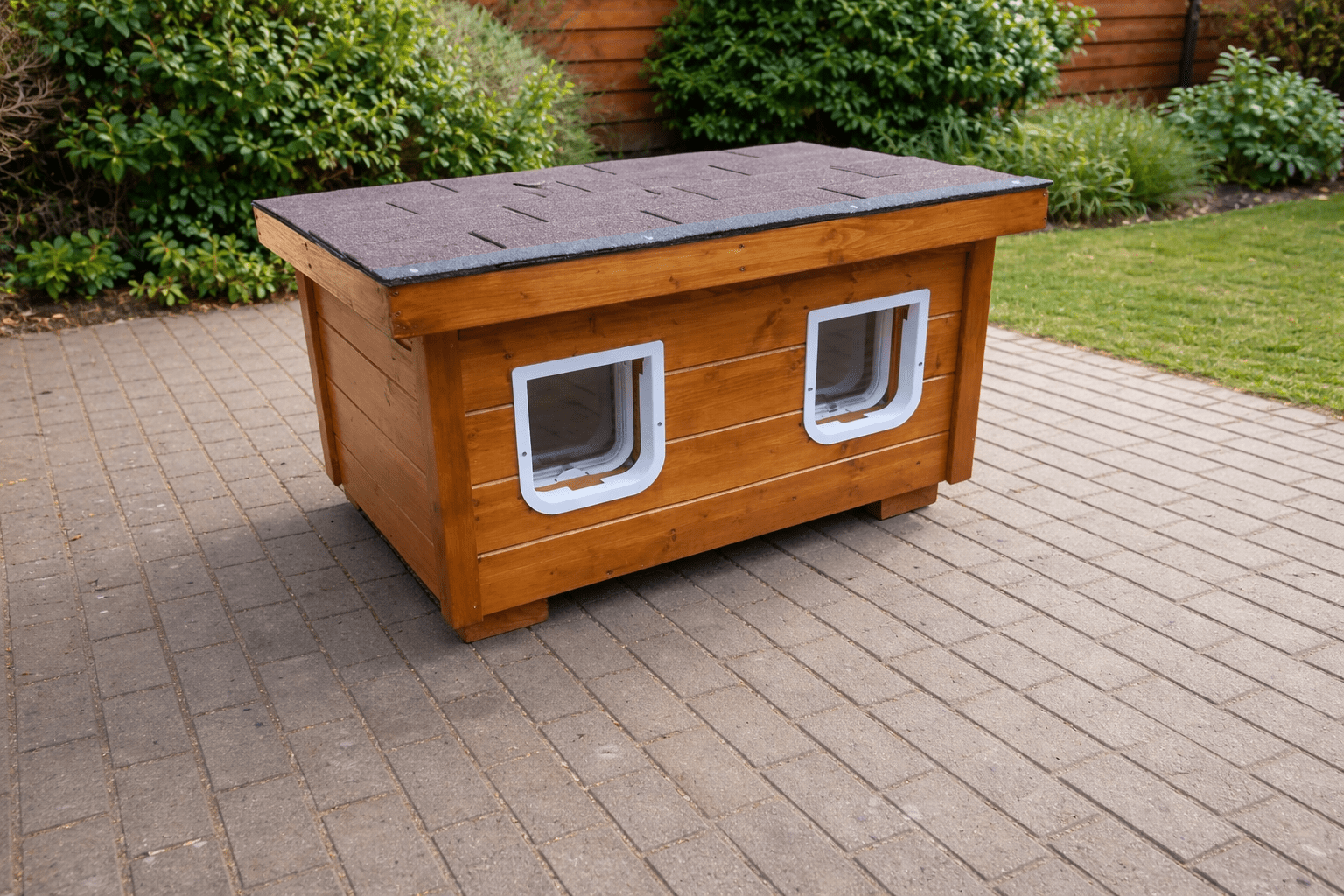 Každý detail, od rozmerov dvierok po sklon strechy, je navrhnutý tak, aby vaša mačka mala pocit bezpečia a pohodlia, či už je vonku, alebo vo vnútri domčeka.