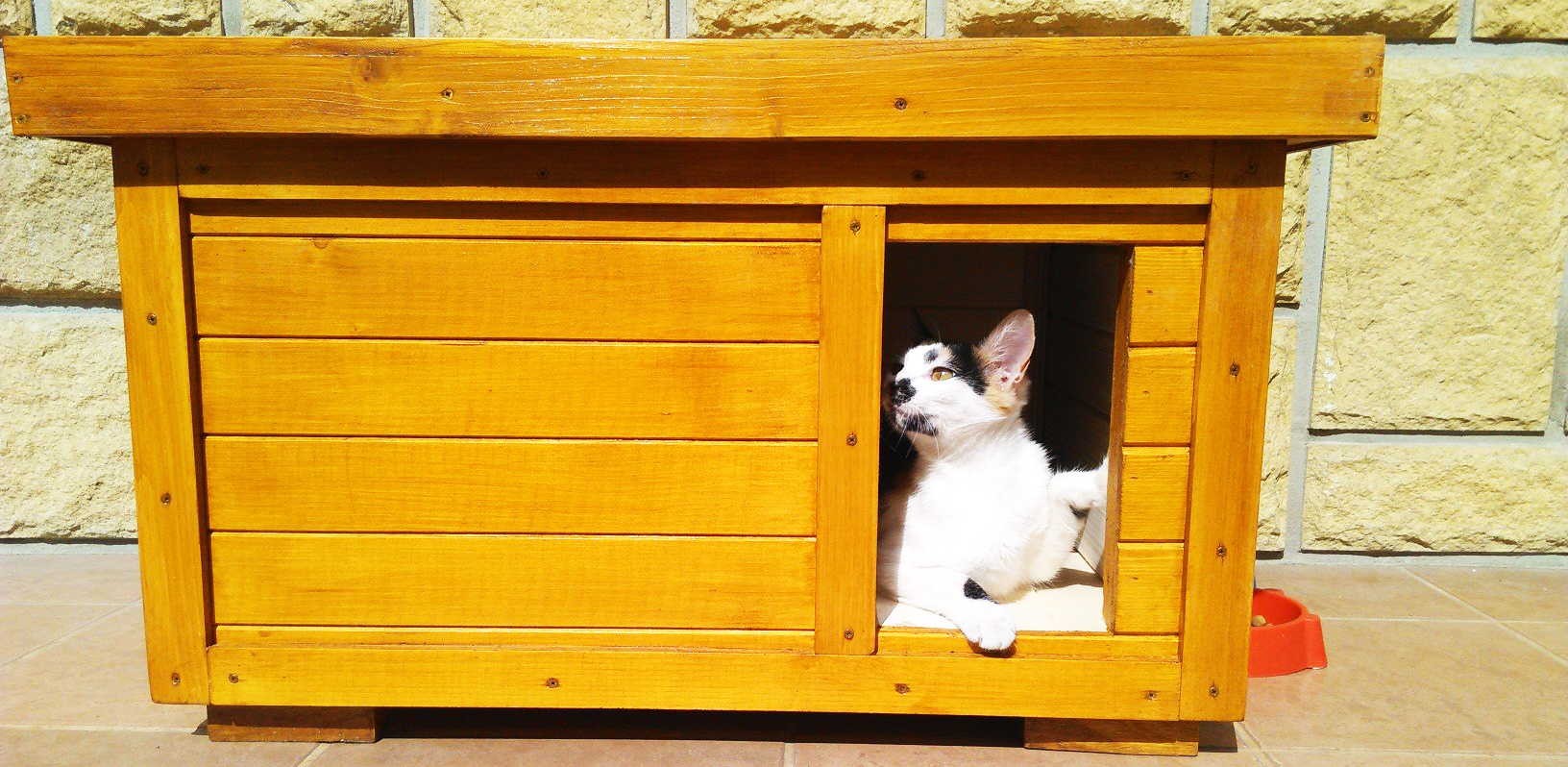 Náš kocúr si na búdu veľmi rýchlo zvykol. Rád často leňoší aj na rovnej streche. Je na prvý pohľad vidieť, že búda je vyrobená z kvalitných materiálov. Náter je taktiež kvalitný. Búdu stačí zvonku pretrieť mokrou handrou a je ako nová. Možno by som vytkol trochu vyššie nožičky aby sa do búdy v zime nedostal sneh ale to je detail. Môžem iba odporúčať.