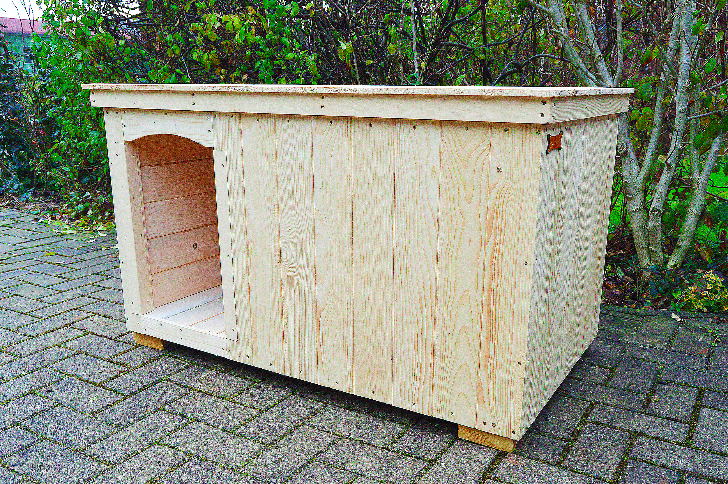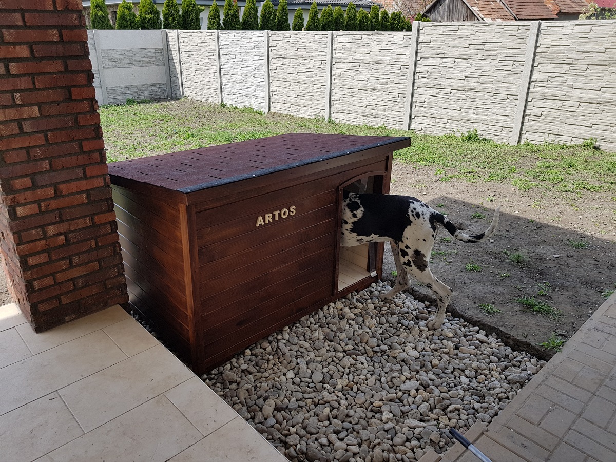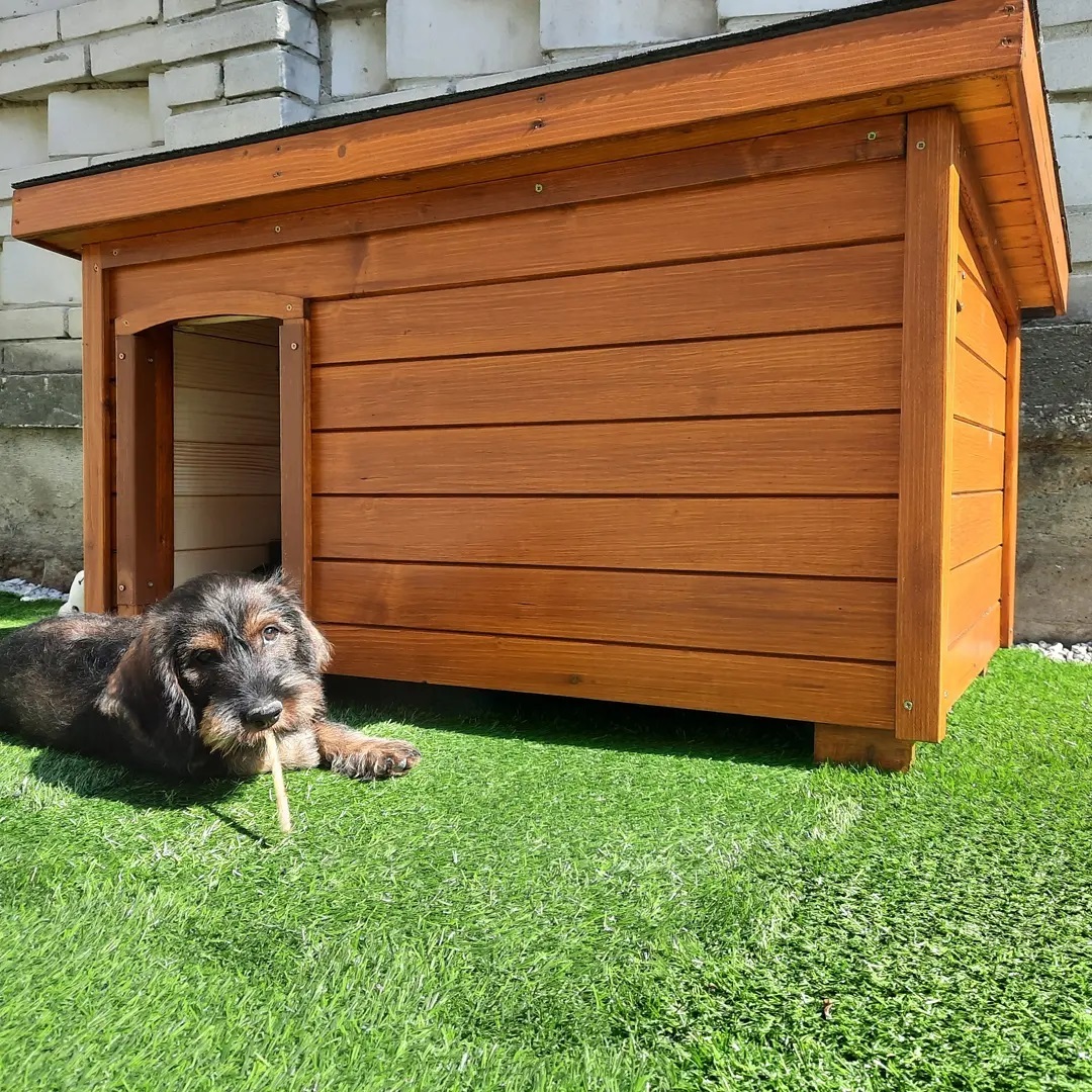 ” Objednal som veľkú búdu s plochou strechou pre mojich dvoch malých psov a úplne si ju obľúbili. Majú teraz úkryt, teplo s dostatkom priestoru na pohyb. Krásne remeselné spracovanie. ”