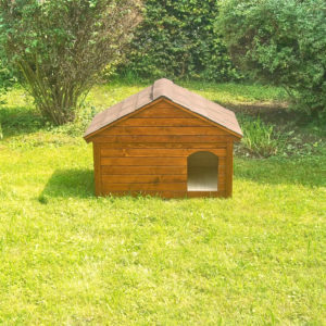 Zateplená psia búda TOBY s vodorovnou strechou v odtieni teak #1